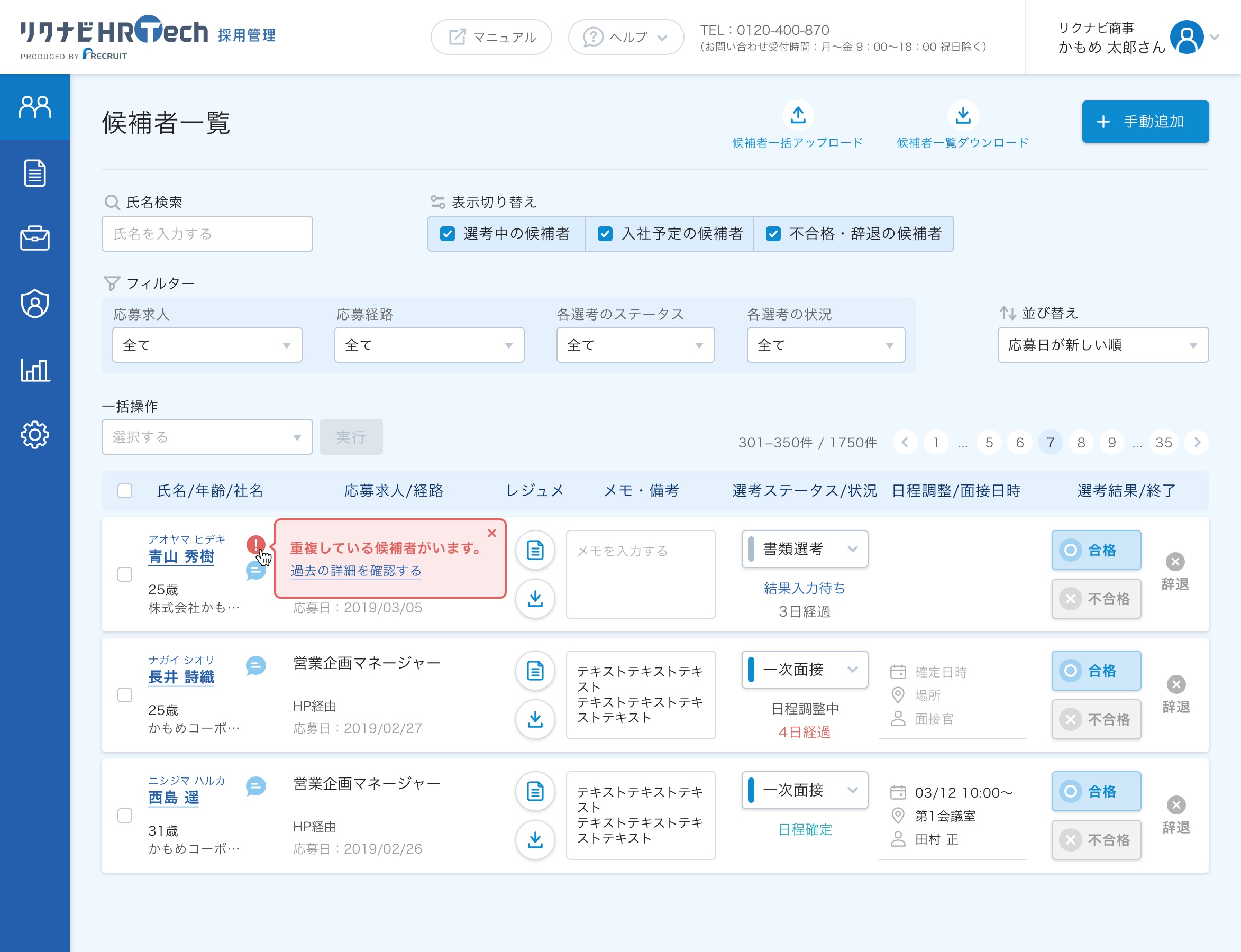 いつもリクナビHRTech 採用管理をご利用いただき、ありがとうございます。
